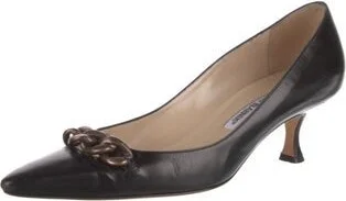 Manolo Blahnik Leather Pumps Black Pointed-Toes Fit: This style typically runs narrow and a half size small. Unfortunately, due to restrictions, this item may not be eligible for shipping in all areas Read more