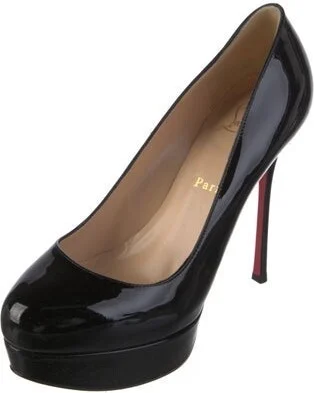 Christian Louboutin Patent Leather Pumps Black Round-Toes Platform Designer Fit: This style typically runs a half size to a full size small.