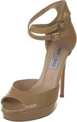 Jimmy Choo Patent Leather Sandals Neutrals Animal Print Platform Crossover Straps & Buckle Closure at Ankles Fit: This style typically runs a full size small. Read more