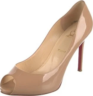 Christian Louboutin Patent Leather Pumps Neutrals Peep-Toes Platform Designer Fit: This style typically runs a half size to a full size small.