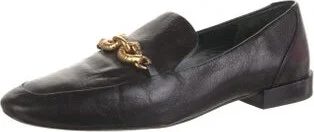 Tory Burch Leather Loafers Black Round-Toes with Chain-Link Accents Includes Box Designer Fit: This designer typically runs true to size. Unfortunately, due to restrictions, this item may not be eligi Read more