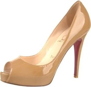 Christian Louboutin Patent Leather Pumps Neutrals Peep-Toes Platform Includes Dust Bag Designer Fit: This style typically runs a half size to a full size small.