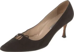 Manolo Blahnik Suede Pumps Black Semi-Pointed Toes Fit: This style typically runs narrow and a half size small. Read more