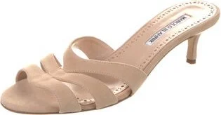 Manolo Blahnik Suede Slides Neutrals Crossover Straps Fit: This style typically runs narrow and a half size small.