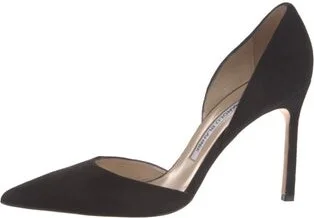 Manolo Blahnik Suede D'Orsay Pumps Black Pointed-Toes Includes Box & Dust Bag Fit: This style typically runs narrow and a half size small.