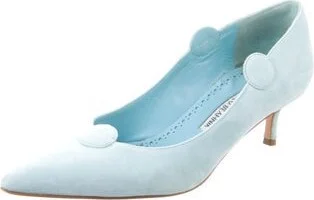 Manolo Blahnik Suede Pumps Blue Pointed-Toes Includes Box & Dust Bag Fit: This style typically runs narrow and a half size small. Read more