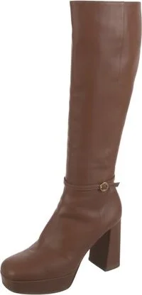 Gianvito Rossi Leather Knee-High Boots Brown Square-Toes Platform Wrap-Around Straps & Concealed Zip Closure at Sides Designer Fit: Boots by Gianvito Rossi typically run a half size small. Unfortunately, due to restrictions, this item may not be eligible for shipping in all areas.