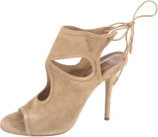 Aquazzura Suede Sandals Neutrals Platform Wrap-Around Straps & Tie Closures