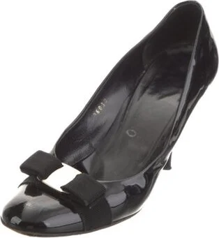 Salvatore Ferragamo Patent Leather Pumps Black Vara Bow Accent Round-Toes with Bow Accents Includes Box Fit: This style typically runs a half size small. Read more