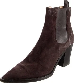Gianvito Rossi Suede Ankle Chelsea Boots Brown Pointed-Toes Includes Box Designer Fit: Boots by Gianvito Rossi typically run a half size small. Read more