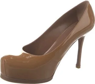Christian Louboutin Patent Leather Pumps Neutrals Round-Toes Platform Includes Box Designer Fit: This style typically runs a half size to a full size small.