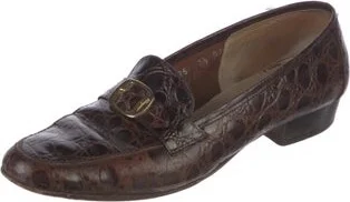 Salvatore Ferragamo Leather Pumps Brown Printed Semi-Pointed Toes Buckle Closure At Uppers Includes Box Fit: This style typically runs a half size small. Unfortunately, due to restrictions, this item Read more