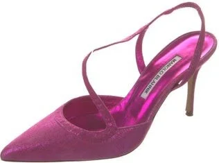 Manolo Blahnik Suede Slingback Pumps Pink Suede Trim Pointed-Toes Straps Fit: This style typically runs narrow and a half size small. Read more