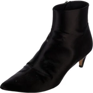 Isabel Marant Satin Ankle Boots Black Pointed-Toes Concealed Zip Closure at Sides Read more