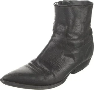 Saint Laurent Leather Ankle Boots Black Semi-Pointed Toes Concealed Zip Closure at Sides Fit: This style typically runs a half size small. Unfortunately, due to restrictions, this item may not be eligible for shipping in all areas.
