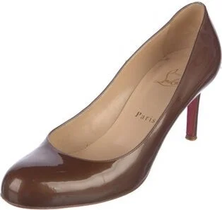 Christian Louboutin Patent Leather Pumps Brown Round-Toes Designer Fit: This style typically runs a half size to a full size small. Read more