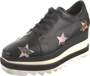 Stella McCartney Leather Oxfords Black Printed Square-Toes Platform Lace-Up Closure at Uppers Includes Dust Bag Read more