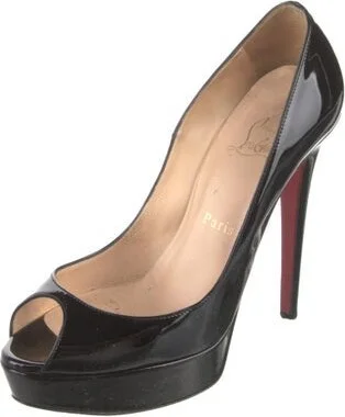 Christian Louboutin Patent Leather Pumps Black Peep-Toes Platform Designer Fit: This style typically runs a half size to a full size small.
