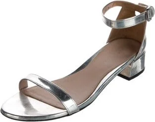 Stuart Weitzman Patent Leather Sandals Silver Wrap-Around Straps & Buckle Closure at Ankles Includes Box Designer Fit: This designer typically runs true to size. Read more