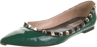 Valentino Patent Leather Flats Green Rockstud Accents Leather Trim Pointed-Toes with Studded Accents Designer Fit: Flats by Valentino typically run a half size small.