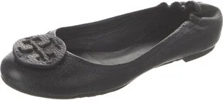 Tory Burch Leather Flats Black Round-Toes Designer Fit: This designer typically runs true to size. Unfortunately, due to restrictions, this item may not be eligible for shipping in all areas.