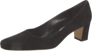 Manolo Blahnik Suede Pumps Black Leather Trim Round-Toes Fit: This style typically runs narrow and a half size small. Read more