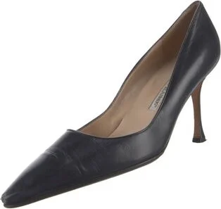 Manolo Blahnik Leather Pumps Black Semi-Pointed Toes Includes Dust Bag Fit: This style typically runs narrow and a half size small. Unfortunately, due to restrictions, this item may not be eligible for shipping in all areas.