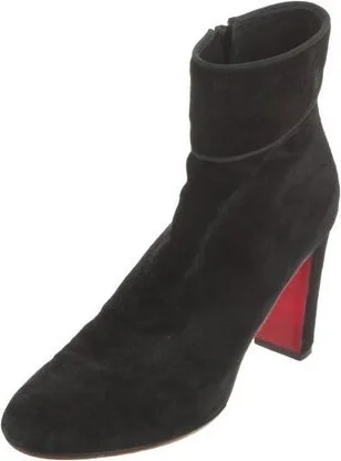 Christian Louboutin Suede Ankle Boots Black Semi-Pointed Toes with Grosgrain Trim Exposed Zip Closure at Sides Includes Dust Bag Designer Fit: This style typically runs a full size small. Read more