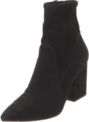 Loeffler Randall Suede Ankle Sock Boots Black Pointed-Toes Exposed Zip Closure at Sides