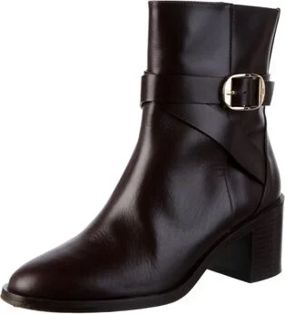 Stuart Weitzman Leather Ankle Moto Boots Brown Round-Toes Wrap-Around Straps & Peg-In-Hole Closure at Sides Designer Fit: This designer typically runs true to size. Unfortunately, due to restrictions, Read more