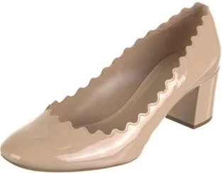 Chloé Patent Leather Pumps Neutrals Round-Toes with Scalloped Accent Designer Fit: Pumps by Chloé typically run a half size small. Read more