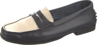 Tod's Leather Loafers Blue Round-Toes Unfortunately, due to restrictions, this item may not be eligible for shipping in all areas.
