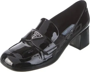 Prada Patent Leather Pumps Black Enameled Metal Triangle Square-Toes Designer Fit: Pumps by Prada typically run a half size small. Read more