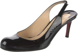 Christian Louboutin Patent Leather Slingback Pumps Black Round-Toes Straps Includes Dust Bag Designer Fit: This style typically runs a half size to a full size small. Read more