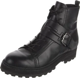 Tod's Leather Ankle Combat Boots Black Round-Toes Wrap-Around Straps & Lace-Up Closure at Uppers Unfortunately, due to restrictions, this item may not be eligible for shipping in all areas. Read more