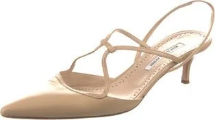 Manolo Blahnik Leather Slingback Pumps Neutrals Pointed-Toes Buckle Closure at Ankles Fit: This style typically runs narrow and a half size small. Unfortunately, due to restrictions, this item may not be eligible for shipping in all areas.