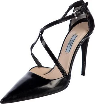 Prada Leather D'Orsay Pumps Black Pointed-Toes Crossover Straps & Buckle Closure at Ankles Includes Box & Dust Bag Designer Fit: Pumps by Prada typically run a half size small. Unfortunately, due to restrictions, this item may not be eligible for shipping in all areas.