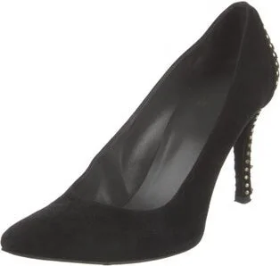 Stuart Weitzman Suede Pumps Black Round-Toes with Studded Accents Designer Fit: This designer typically runs true to size. Read more