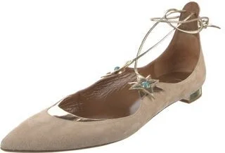 Aquazzura Suede Ballet Flats Neutrals Semi-Pointed Toes Wrap-Around Straps Designer Fit: Flats by Aquazzura typically run a half size small. Read more
