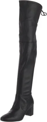 Stuart Weitzman Leather Over-The-Knee Boots Black Semi-Pointed Toes Tie Closures Designer Fit: This designer typically runs true to size. Unfortunately, due to restrictions, this item may not be eligible for shipping in all areas.