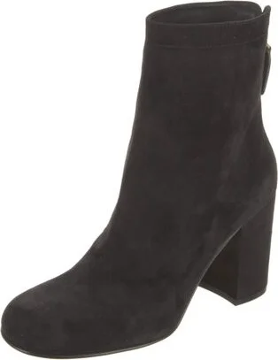 Gianvito Rossi Suede Ankle Boots Black Leather Trim Round-Toes Zip Closures at Shafts Includes Box & Dust Bag Designer Fit: Boots by Gianvito Rossi typically run a half size small.