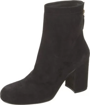 Gianvito Rossi Suede Ankle Boots Black Leather Trim Round-Toes Zip Closures at Shafts Includes Box & Dust Bag Designer Fit: Boots by Gianvito Rossi typically run a half size small.