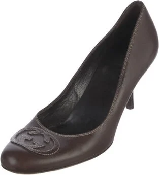 Gucci Leather Pumps Brown Interlocking G Logo Round-Toes Unfortunately, due to restrictions, this item may not be eligible for shipping in all areas. Read more