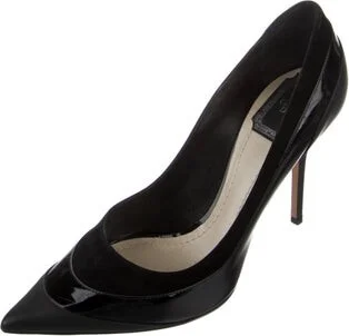 Christian Dior Patent Leather Pumps Black Suede Trim Pointed-Toes Includes Dust Bag Designer Fit: Pumps by Christian Dior typically run a half size small. Read more
