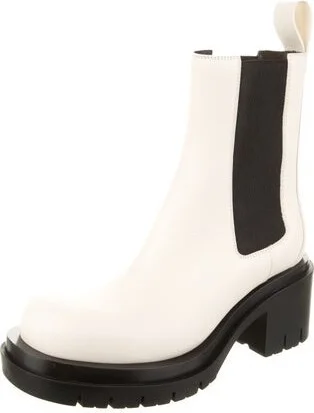 Bottega Veneta Leather Mid-Calf Chelsea Boots Neutrals Rubber Trim Square-Toes Platform Includes Box & Dust Bag Unfortunately, due to restrictions, this item may not be eligible for shipping in all ar Read more