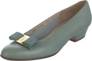 Salvatore Ferragamo Leather Flats Green Vara Bow Accent Round-Toes with Bow Accents Fit: This style typically runs a half size small. Unfortunately, due to restrictions, this item may not be eligible for shipping in all areas.