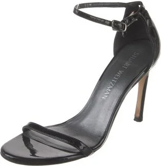 Stuart Weitzman Patent Leather Sandals Black Straps & Buckle Closure at Ankles Designer Fit: This designer typically runs true to size.