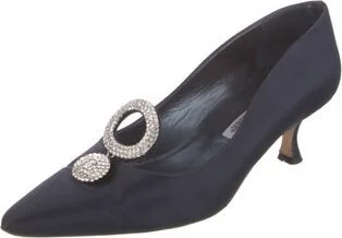 Manolo Blahnik Satin Pumps Blue Semi-Pointed Toes with Crystal Embellishments Fit: This style typically runs narrow and a half size small.