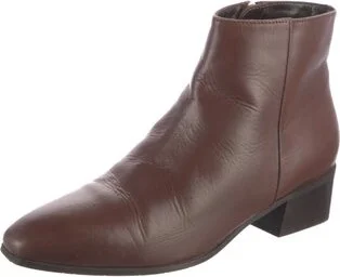 Aquatalia Leather Ankle Boots Brown Semi-Pointed Toes Exposed Zip Closure at Sides Fit: Boots by Aquatalia typically run small, consider taking a half size up. Unfortunately, due to restrictions, this Read more