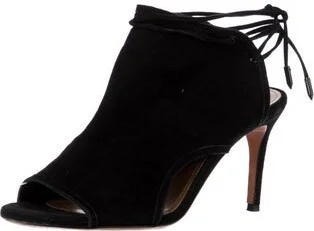 Aquazzura Suede Sandals Black Wrap-Around Straps Includes Box & Dust Bag
